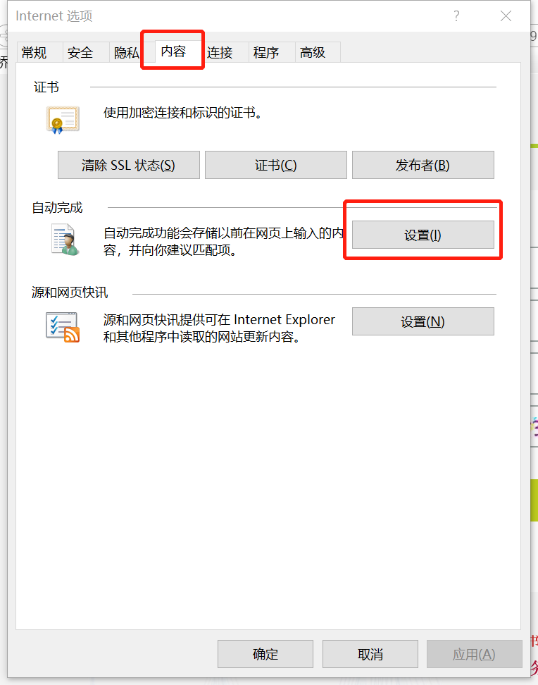 步骤2:在【Internet选项】对话框中,点击『内容』,在“自动完成”栏位,点击『设置』